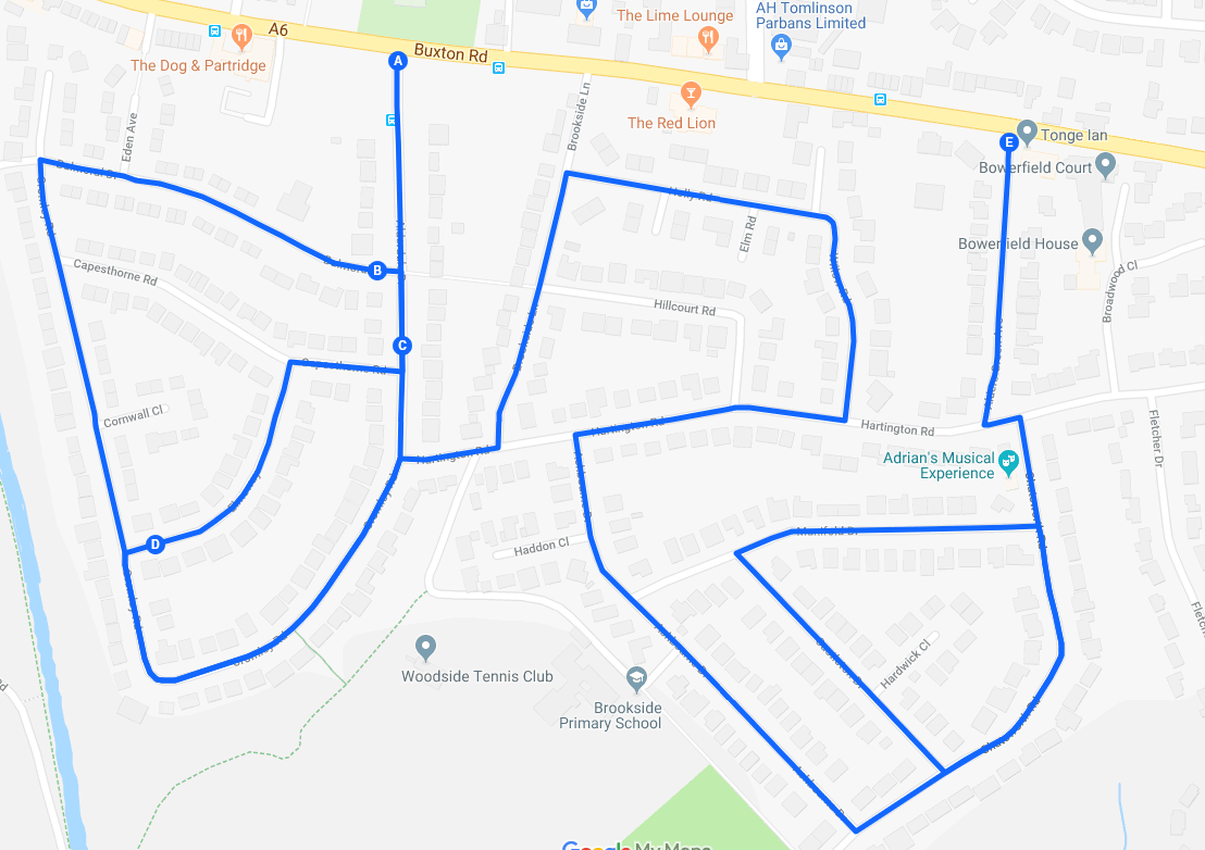 Brookside, Holly, Willow, Ashbourne, Castleton, Manifold, Chatsworth, Alders Green.